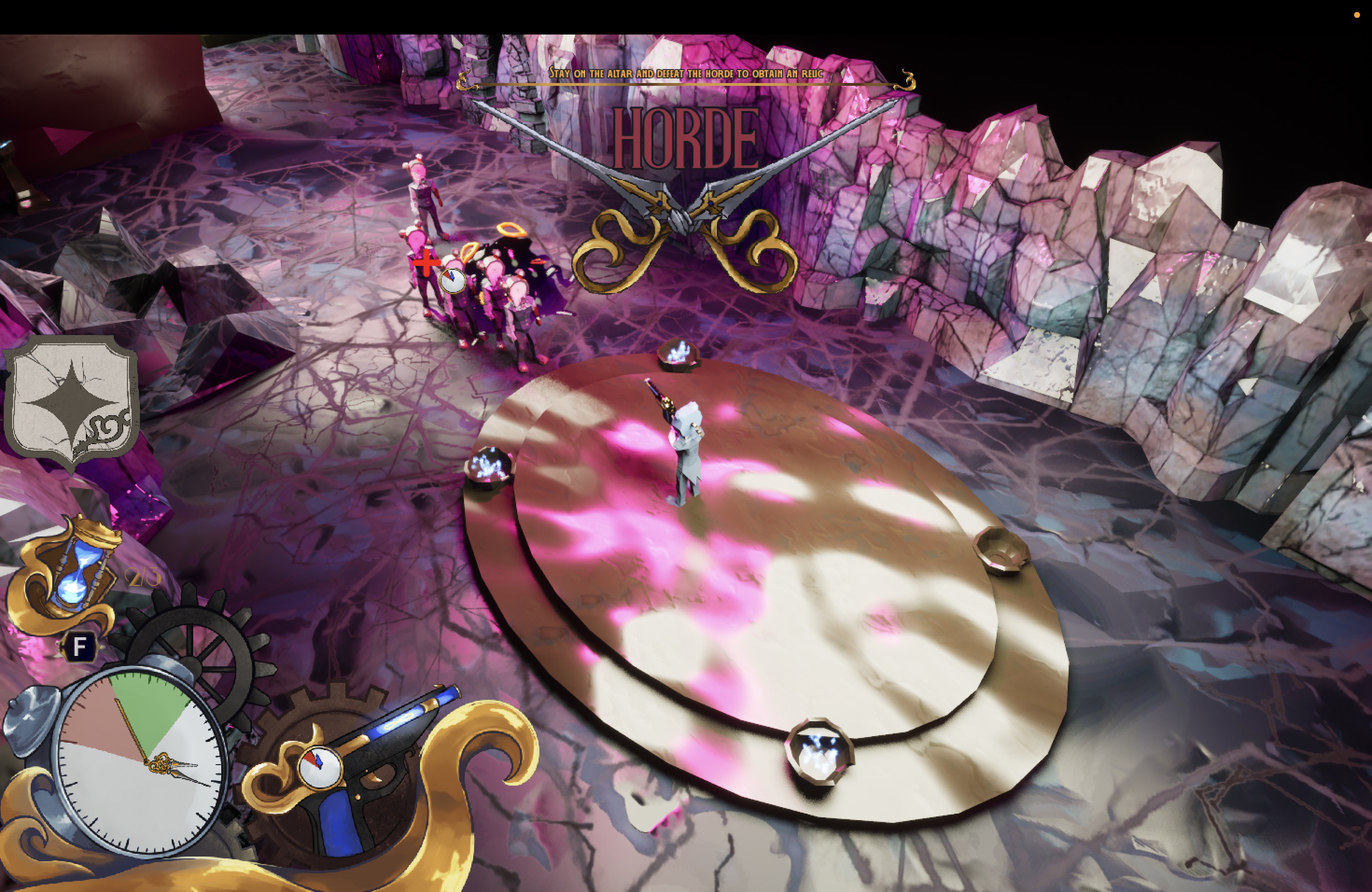 Equip your Time Glock, find Hordes, kill everything on sight, grab ancient relics to the main point and finish the game BEFORE YOUR TIME RUNS OUT. That's all.